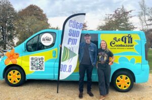 Juliane VILLACAMPA nous présente son auto entreprise « LE FIL CONDUCTEUR » atelier de couture itinérant Philippe LAVIELLE responsable du bar de l’ÎLE DU MALT bar à bières et accueillant 1 fois par semaine Juliane et son camion itinérant
